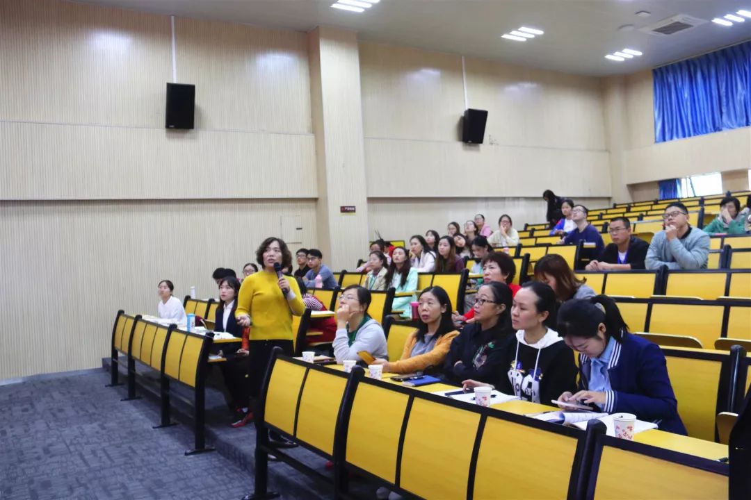 課后,丁老師與老師們親切交流。她指出:“要充分鍛煉學生的聽、說、讀、寫、背誦、思辨、反應力和專注力。說話接龍最重要的是激活,激活孩子內(nèi)在的潛能,讓孩子們學以致用。”老師們紛紛表示獲益匪淺。