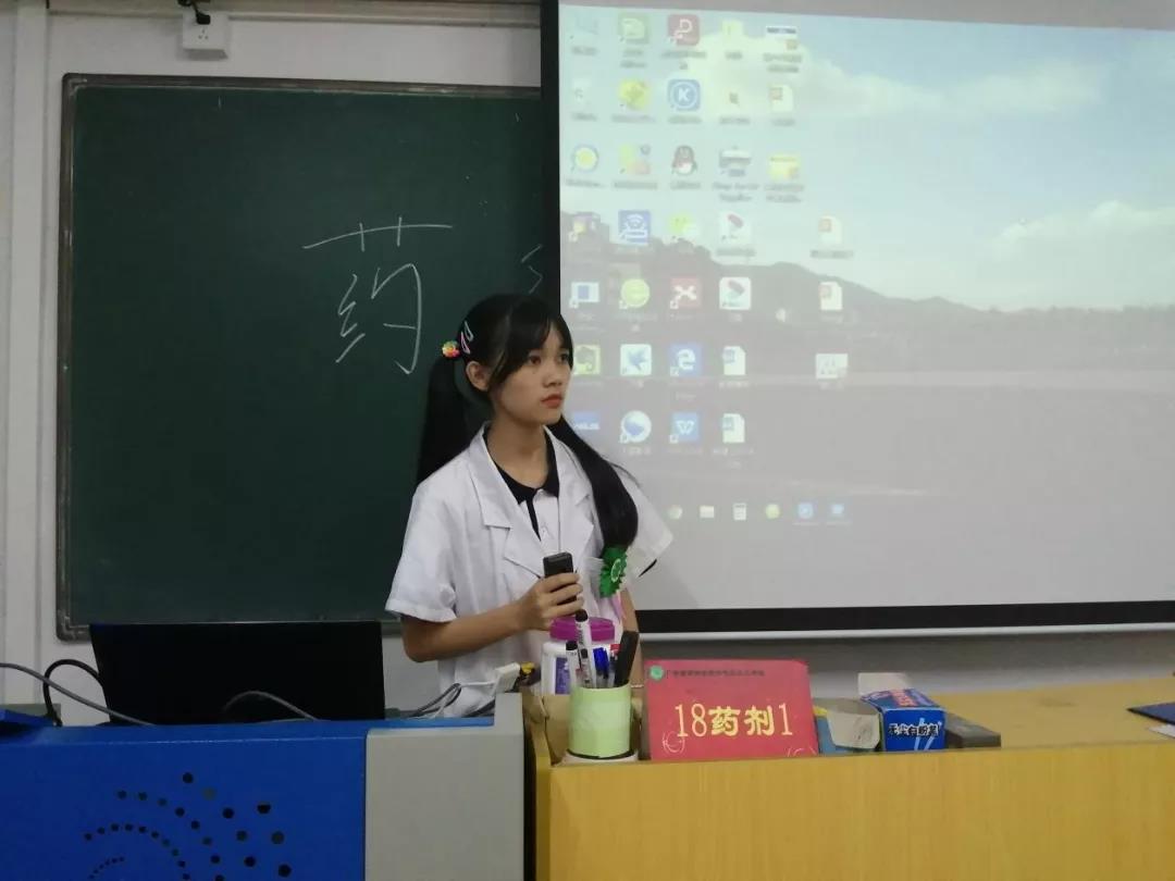 來自藥劑專業(yè),各個班級的參賽小隊展示屬于他們的團隊風采!向評委老師介紹這個團隊的名字,為什么取這個名字,他們的團隊精神,怎么去經營這個藥店,哪位是他們店內的執(zhí)業(yè)藥師、營業(yè)員、收銀員等,還有運用銷售技巧銷售藥品。