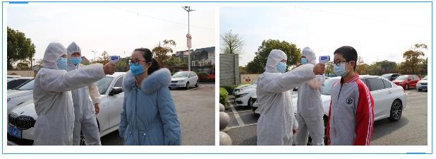 第一次測量完體溫后,體溫正常的學生和家長到班主任處查看是否持有嘉興健康綠碼和是否自駕,并當面詢問居家外出史、上交學生居家健康證明、填寫一人一表、手寫健康承諾書。