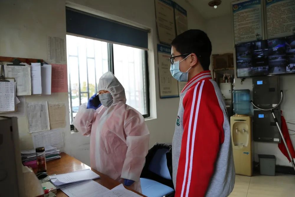 在臨時隔離室,學校汪醫生使用水銀體溫計對學生進行第三次測量,體溫為38.0度,按照一人一表認真詢問該生情況:你和你家人14天內是否離開過嘉興?是否接觸過來自武漢市及周邊地區、或境內其他有病例報告的社區、或境外疫情嚴重國家或地區的發熱或有呼吸道癥狀的患者?是否接觸過湖北或境外歸國人員?