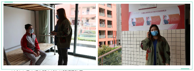 阮老師給學生佩戴好口罩并詢問情況,學生說身體不舒服。阮老師聯系班主任和安全負責老師趙璐群老師。