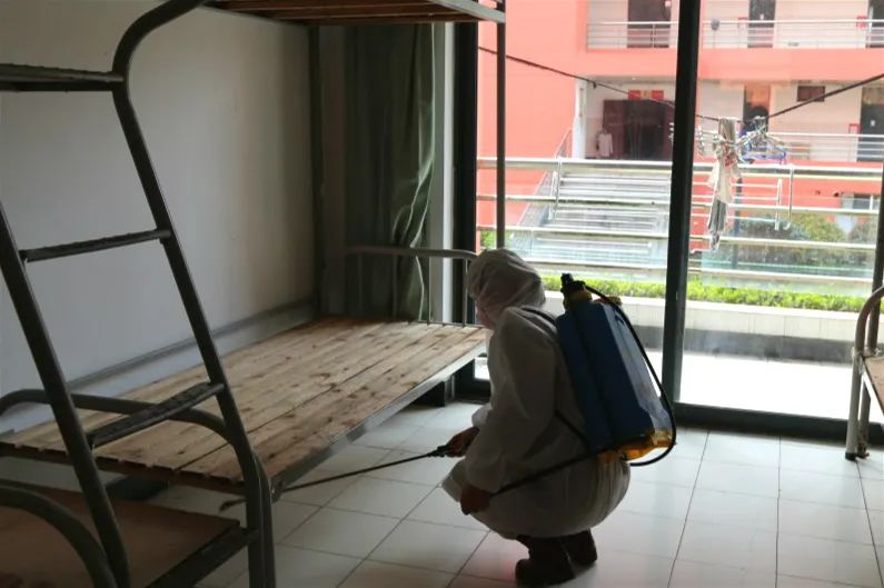 隨后,學校消毒人員對學生剛剛經過的途徑和場所進行仔細徹底消毒。