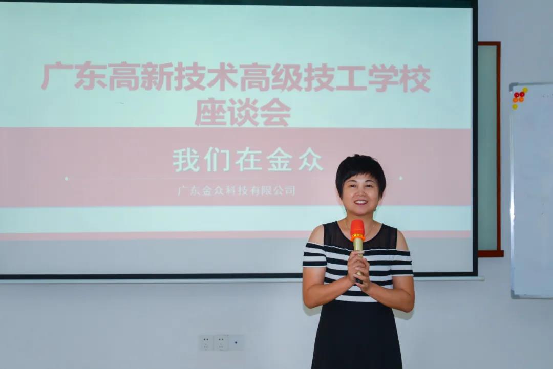 為深入了解經貿系87名學子在就業單位的綜合表現,精準提升學校就業指導工作水平,9月1日下午,廣東省高新技術高級技工學校執行校長肖中圓、經貿系就業指導老師黃良軍前往廣東金眾科技有限公司,對企業和經貿系畢業生、實習生進行回訪。廣東金眾科技有限公司(以下簡稱金眾)董事長齊丹鋒、副總裁錢民、副總裁程中平對校領導、老師們的到來表示熱烈歡迎,在齊董的帶領下,肖校長一行參觀了金眾公司。