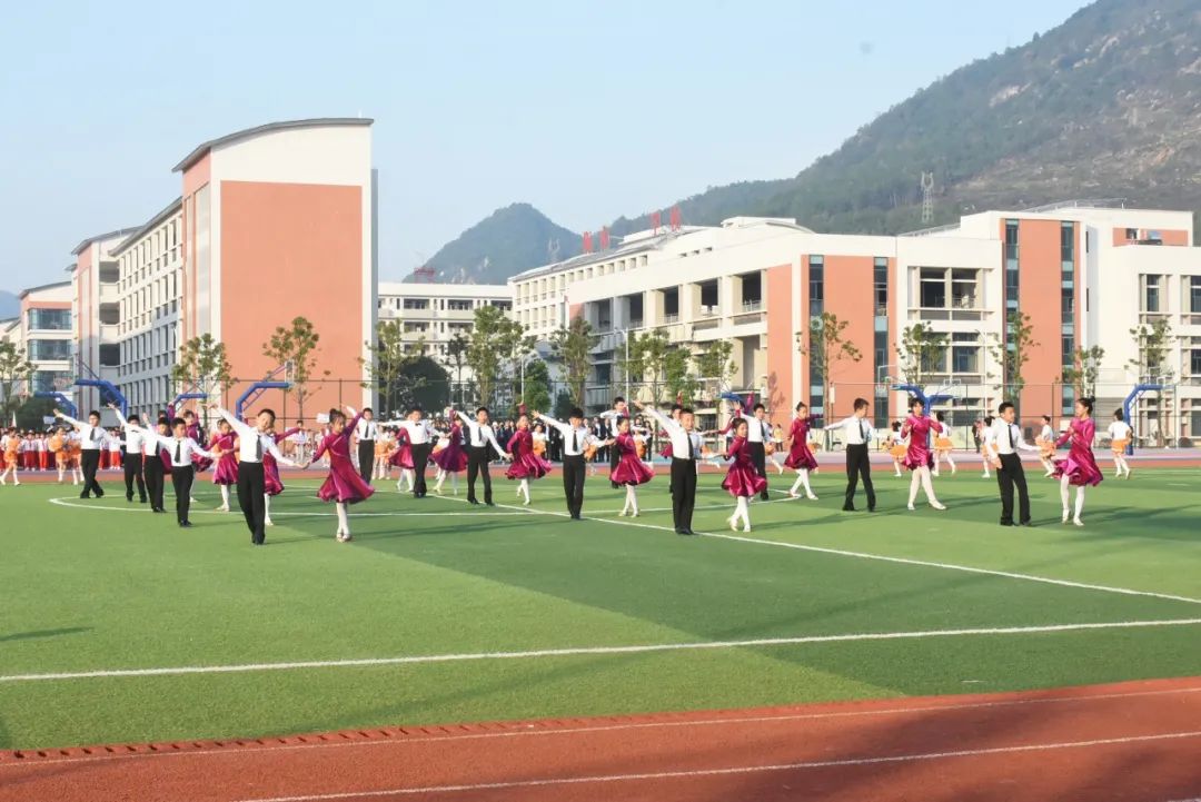足球場的正中央,中學部的健兒們組成整齊劃一的方陣,帶著矯健的身姿和瀟灑靈動的舞步拉開了大余衡水實驗學校第二屆體育節的序幕。衡實的孩子跟隨著歡樂的節拍,盡情的展現著屬于他們的熱情和動感。
