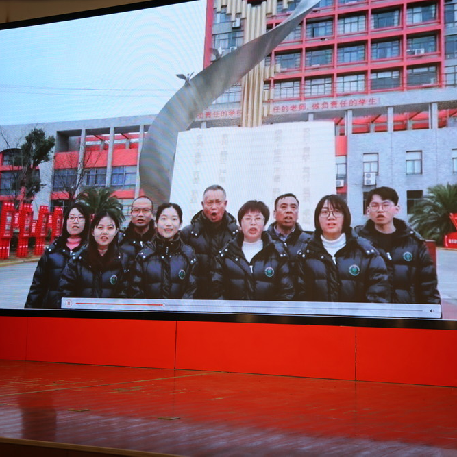 703班夏安琪母親作為家長代表為我們帶來了祝福視頻,她首先向培養了大批優秀學子的學校表達誠摯敬意,接著向辛勤付出的老師們致以親切祝福,最后她鼓勵所有初中學子,變決心為信心,變誓言為行動,為了自己的青春與夢想,以夢為馬,不負年華!