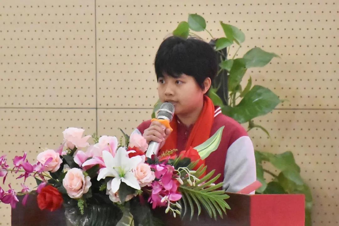 (905班學生代表巫詩怡:決勝中考是我們不懈的追求,挑戰人生是我們堅定的信念,我們擁有團結拼搏的精神,我們擁有堅韌強健的體魄,我們擁有追求卓越的豪邁,我們是衡實最棒的學子,我們將以優異的成績續寫母校榮光!)